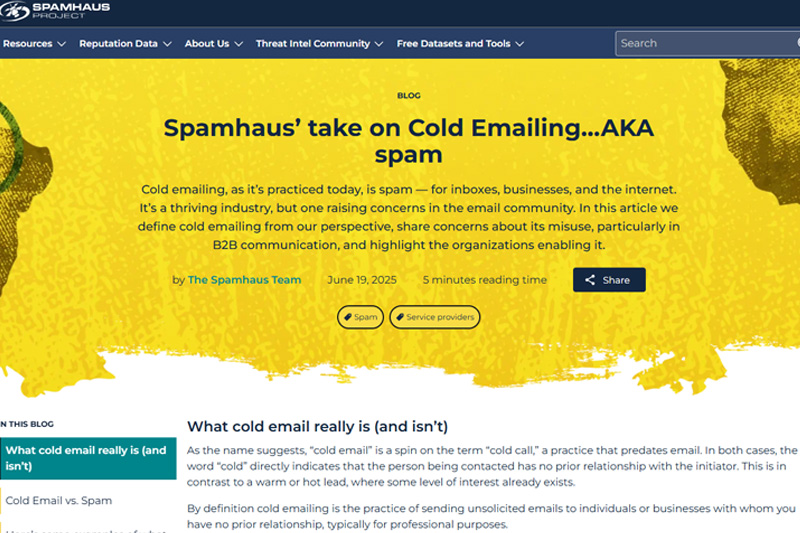 そのスパムハウスが、2025年6月19日に「コールドメール(新規開拓メール)」を「迷惑メール(スパム)」として扱うと強く警鐘を鳴らしました。